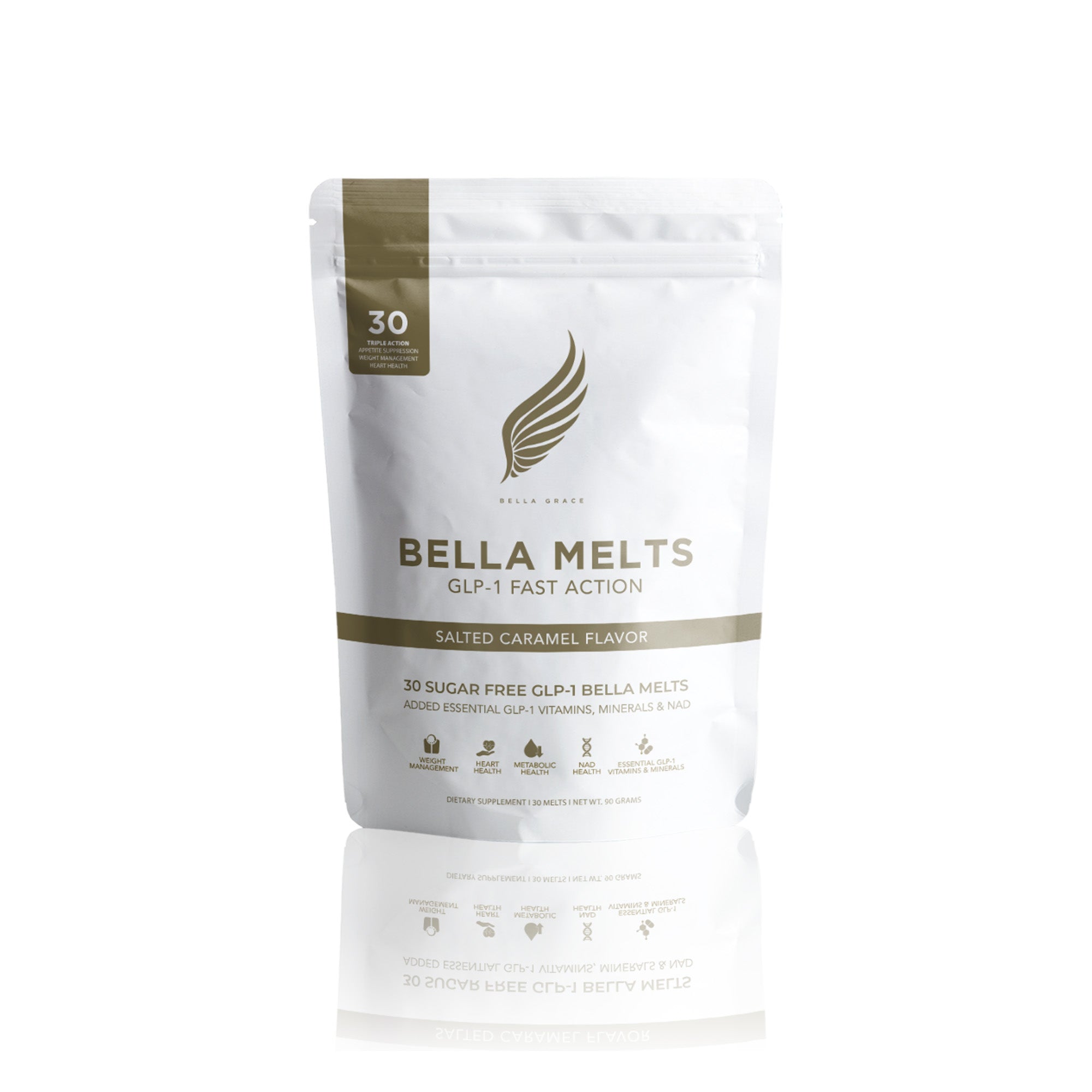 „Bella Melts“ yra malonus karamelės skonis, praturtintas galingais augaliniais komponentais ir būtinomis maistinėmis medžiagomis. Kiekviena be cukraus tabletė natūraliai veikia jūsų organizmą, aktyvuodama GLP-1, padėdama greičiau pasijusti sotiems, išlaikyti sotumo jausmą, numalšinti potraukį ir sudeginti daugiau kalorijų.