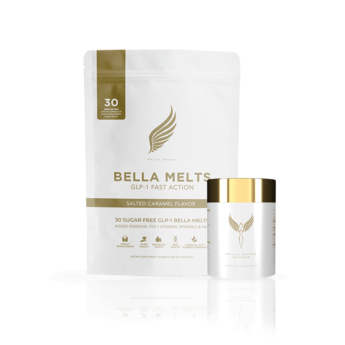 Šis rinkinys natūraliai aktyvuoja jūsų organizmo GLP-1 gamybą be adatų ir stiprių šalutinių poveikių. Kartu „Bella Melts“ ir „BellaTrim“ padeda protingiau ir tvariau valdyti svorį, slopindami potraukį valgyti, mažindami streso hormonų kiekį ir palaikydami medžiagų apykaitą.
